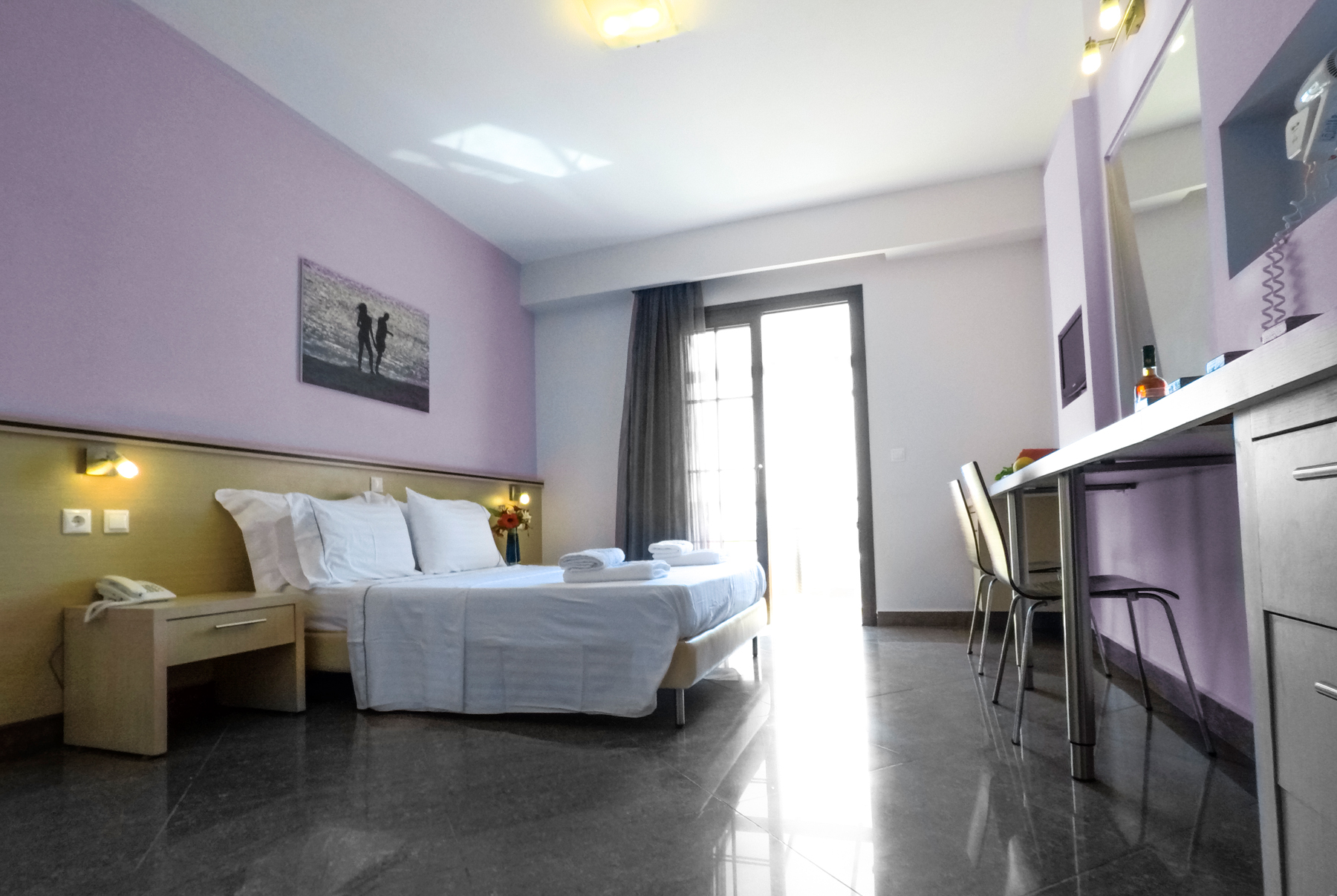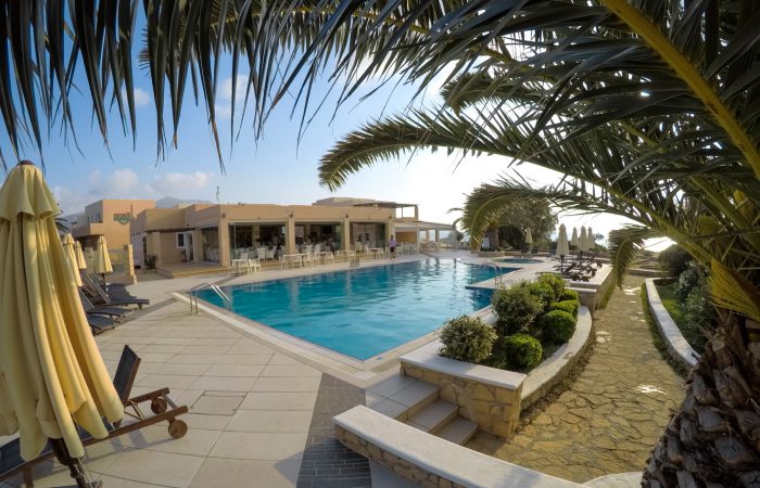 Das Hotel Irini besteht aus mehreren Gebäudeteilen mit insgesamt 60 Zimmern, die um eine gepflegte Gartenanlage angelegt sind. Es gibt einen Meerwasser Swimmingpool und einen Kinderpool. Eine große Sonnenterrasse mit Liegen lädt zum Entspannen ein. Das Frühstück wird im Restaurant am Pool mit herrlichem Meerblick serviert. Zusätzlich verfügt das Hotel noch über eine Snack-Bar, eine TV Lounge sowie kostenloses WLAN. Die Standardzimmer bieten Platz für bis zu drei Personen und sind modern ausgestattet mit Bad/WC, Föhn, Flatscreen-TV, Kühlschrank, Safe sowie Balkon und einer Klimaanlage.