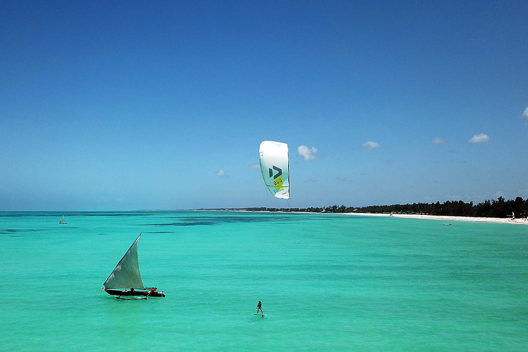 Travel People bietet den Kite Centre Zanzibar in Paje an. Freerider, Freestlyer, Einsteiger sowie Kitesurfer die sich gezielt verbessern wollen haben in Paje ihren Spot gefunden. Die riesige Lagune und beständiger Wind, der je nach Windsaison side- bis sideonshore von rechts oder links kommt, bieten ideale Bedingungen. Selbst Wellen Kitesurfer kommen am vorgelagerten Riff auf ihre Kosten.