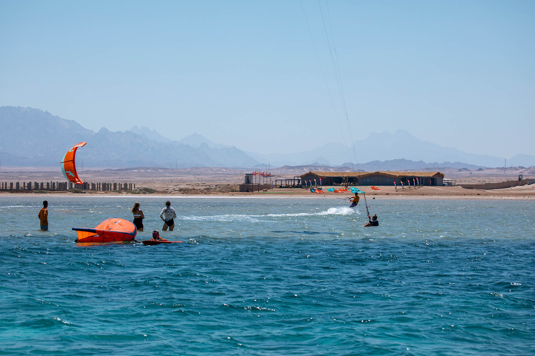 In der großen Bucht weht ein konstanter Nordwind, der durch das nahegelegene Rote Meer noch verstärkt wird, so dass das Revier sehr windsicher ist und fantastische Flachwasserbedingungen bietet.